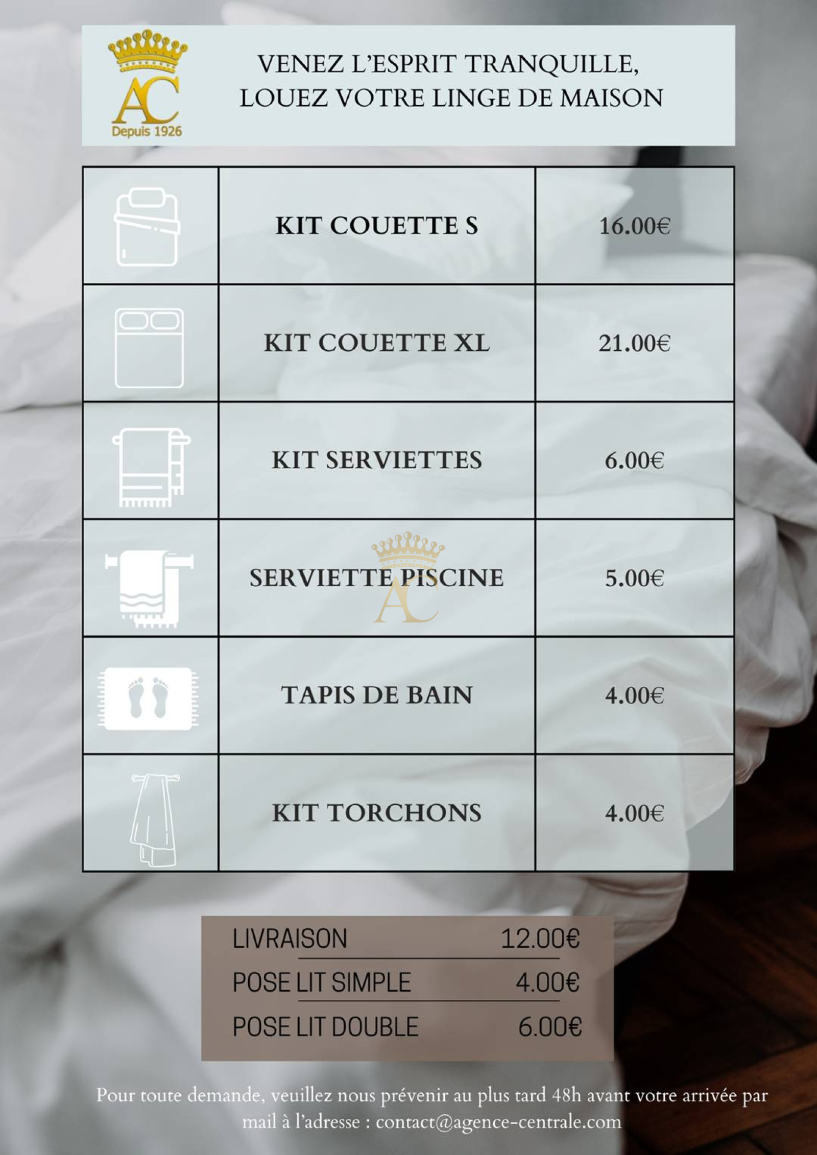 LE LINGE DE MAISON N'EST PAS FOURNI (draps, serviettes, torchons...).