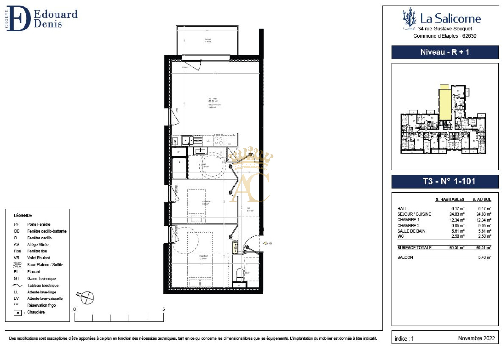 Étaples (62630)Réussir son investissement grâce à un charmant appartement ayant une grande terrasse ensoleillée facile à louer et parfait pour construire son patrimoine dans la commune d'Étaples. Dans un beau programme neuf prévu pour 2026. Cet appartement de 60.51m² comporte un espace nuit comprenant 2 chambres, une salle de bain, un espace cuisine et un coin salon de 24.83m². Il s'agit d'une habitation au 1e étage ; les déplacements quotidiens sont facilités par l'ascenseur. Calme assuré grâce au double vitrage. Vous assure des coûts réduits de consommation énergétique grâce aux normes du label de bâtiment à basse consommation énergétique. Pour vous aérer sans quitter votre appartement, vous bénéficierez d'un agréable balcon mesurant 5.40m² et une terrasse, ce qui porte la surface de l'ensemble à 65.91m². Le domicile s'accompagne d'une place de parking privative. Prix de vente : à partir de 240 000. Si vous avez des questions, n'hésitez pas à contacter Agence Centrale.