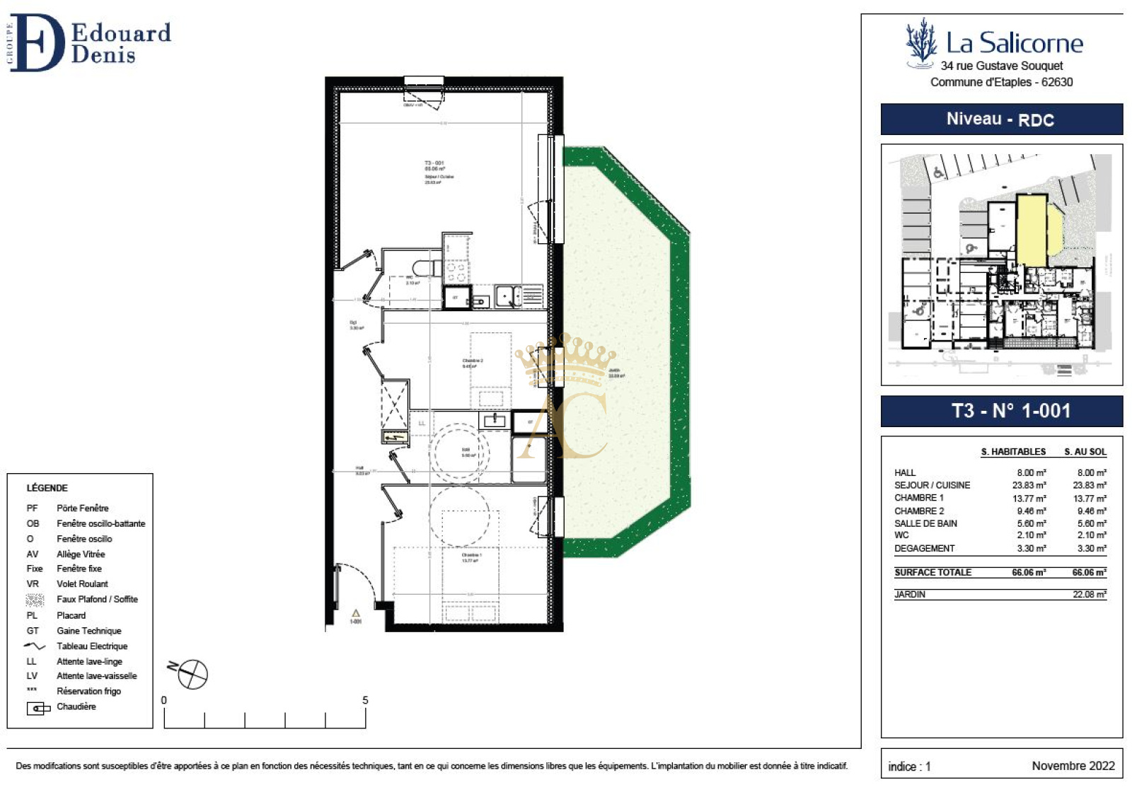 Étaples (62630)Investissement immobilier à réaliser avec ce charmant appartement s'accompagnant de 2 chambres et d'un terrain pour votre retraite sur le territoire d'Étaples. Dans un nouveau programme immobilier neuf de qualité qui sera terminé en 2026. Présence d'un ascenseur dans l'ensemble immobilier. Cet appartement totalisant 66.06m² est composé d'un coin salon de 23.83m², une salle de bain, 2 chambres et un espace cuisine. Tranquillité assurée grâce aux fenêtres à double vitrage. Satisfait aux dernières normes imposées par la réglementation en matière de construction label BBC. Pour vous aérer sans quitter votre appartement, vous bénéficierez d'un jardin occupant 22.08m² et un charmant balcon, ce qui porte la superficie exploitable à 88.14m². L'habitation donne accès à au moins une place de parking. Le prix de vente minimum est fixé à 258 000 €. Pour visiter ce logement, vous pouvez contacter votre agence Agence Centrale. Logement intéressant pour un jeune couple avec enfant.