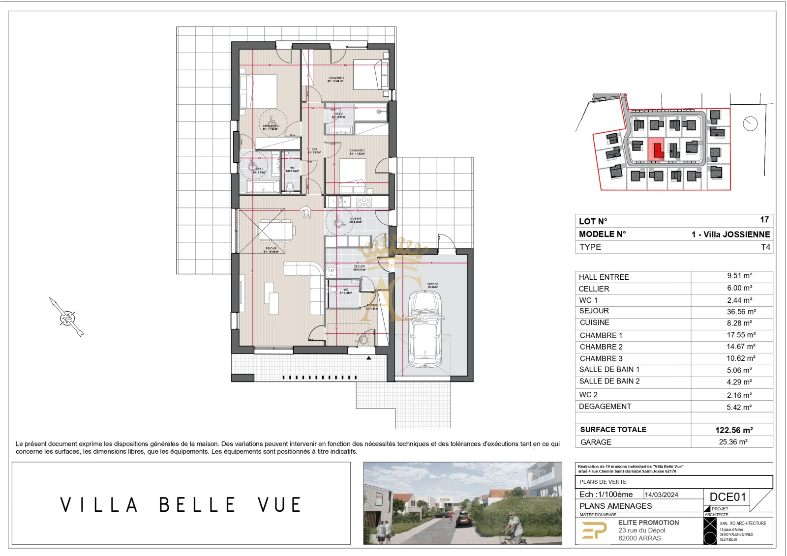 Saint-Josse (62170)Nous vous proposons une magnifique maison individuelle de plain-pied, en vente en l'état futur d'achèvement (VEFA), située à Saint-Josse, dans le département du Pas-de-Calais. La livraison est prévue pour début 2026. Cette maison d'une surface de 122.56 m² sur un terrain de 673 m², bénéficie d'une exposition sud-ouest, offrant une luminosité optimale tout au long de la journée.