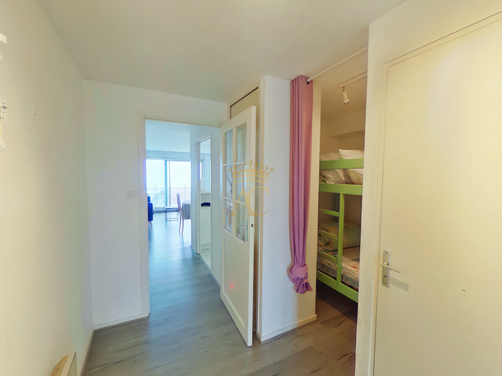 Le Touquet-Paris-Plage (62520)Agence Centrale a sélectionné pour vous un appartement front de mer bénéficiant de 2 chambres au Touquet-Paris-Plage. L'appartement est constitué de 2 chambres, un coin salon de 21.62m², un espace cuisine et une cabine. La surface plancher intérieure habitable développe 53.10m² loi Carrez. Aspect très appréciable au niveau de l'agencement, le bien compte une salle de bains et une salle de douche séparée ce qui garantit un certain confort. Il s'accompagne d'un espace de stockage à la cave. Calme assuré grâce aux fenêtres à double vitrage. Dehors, l'habitation s'accompagne de 2 balcons totalisant 11.20m². Elle se trouve au 7ème niveau d'un bâtiment de 9 étages mais l'immeuble est équipé d'un ascenseur. L'appartement a été construit en 1990.. Pour ce qui est de l'imposition foncière, elle est fixée à 1 600 euros. Pour planifier une visite, vous pouvez contacter Agence Centrale.