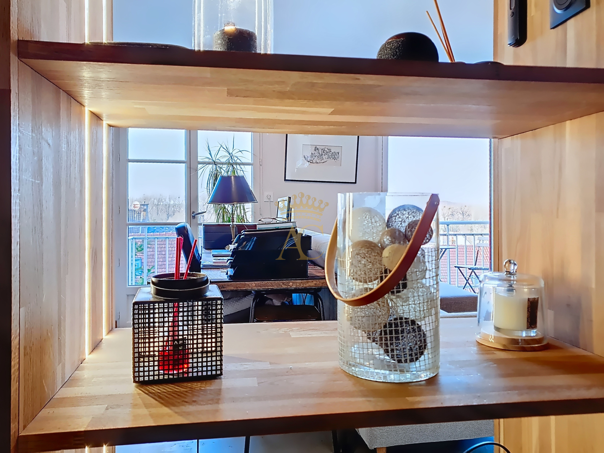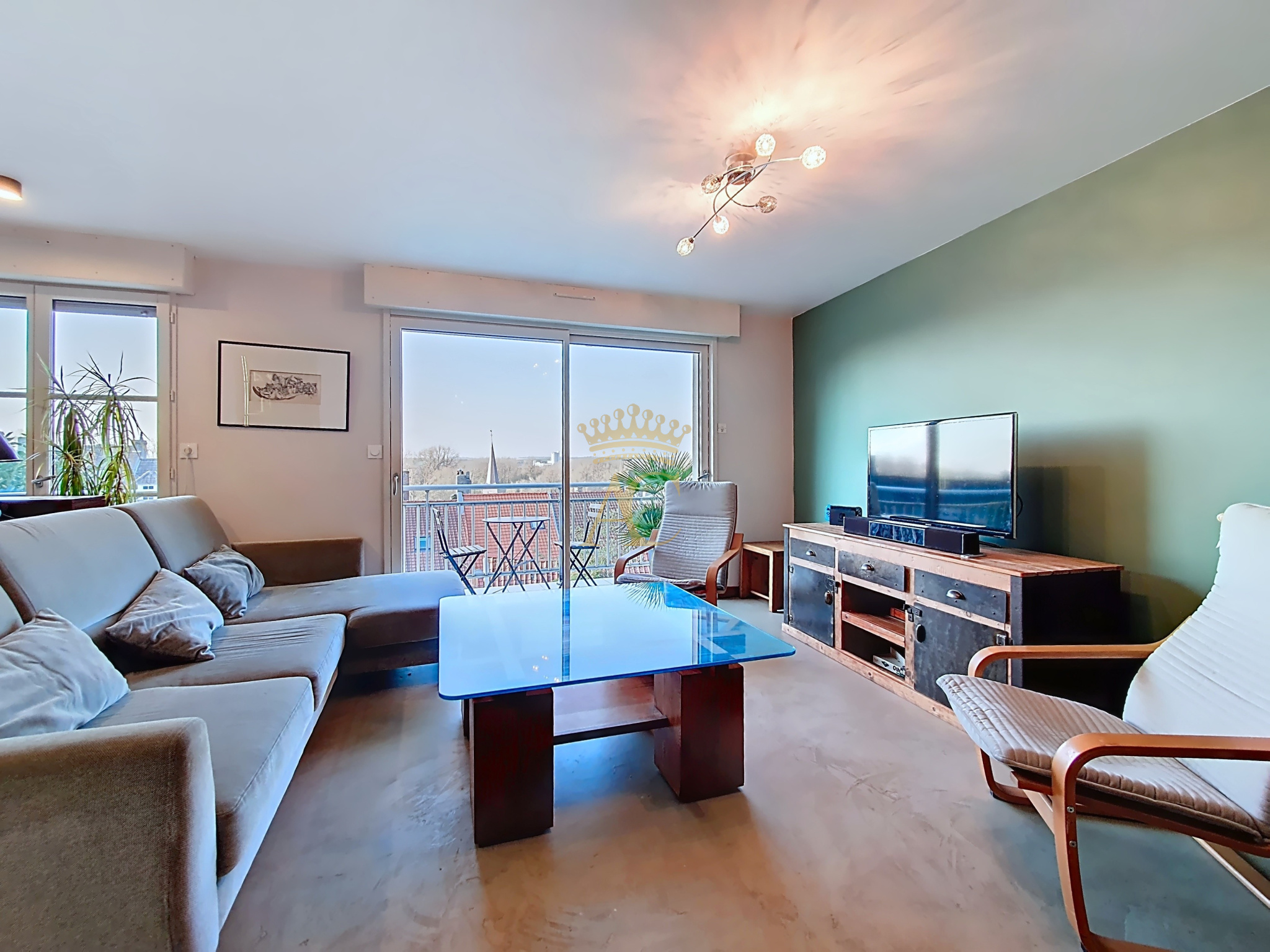 Dès l'entrée, découvrez une belle pièce de vie lumineuse avec cuisine équipée, prolongée par un balcon offrant une vue dégagée sur la ville basse.