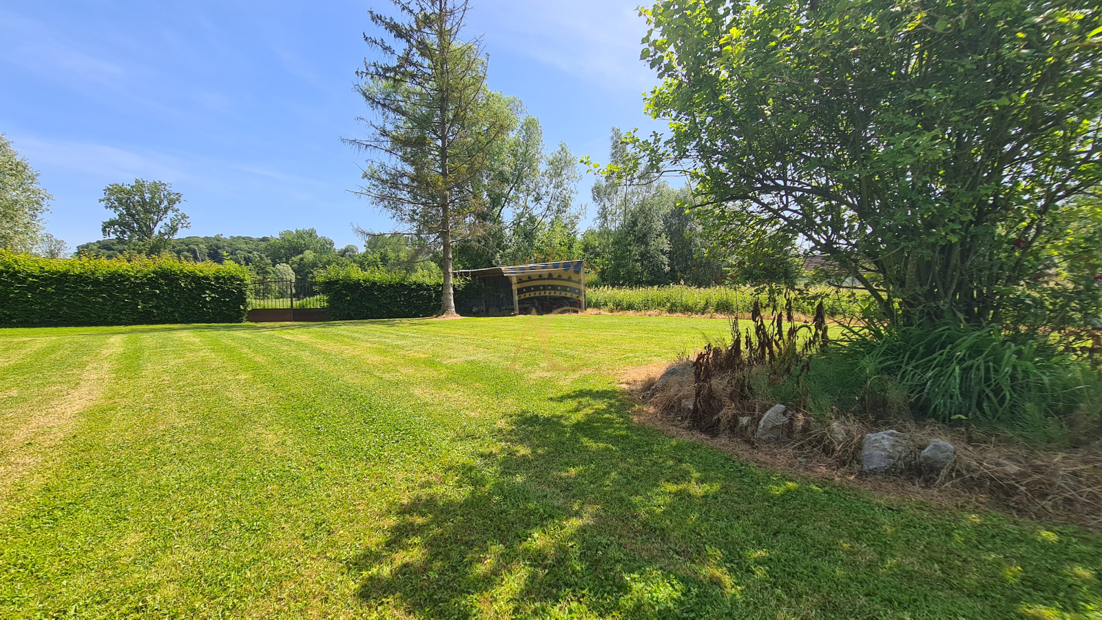 Un grand garage de 70 m² avec belle charpente en peuplier, porte motorisée de 5.60 m de large, arrivée d'eau - idéal pour un projet de gîte, d'atelier ou autre. Et une cuisine d'été aménagée avec fumoir, barbecue et arrivée d'eau, parfaite pour les beaux jours. Le tout se prolonge jusqu'a la rivère, au fond du terrain, pour une atmosphère paisible et bucolique.