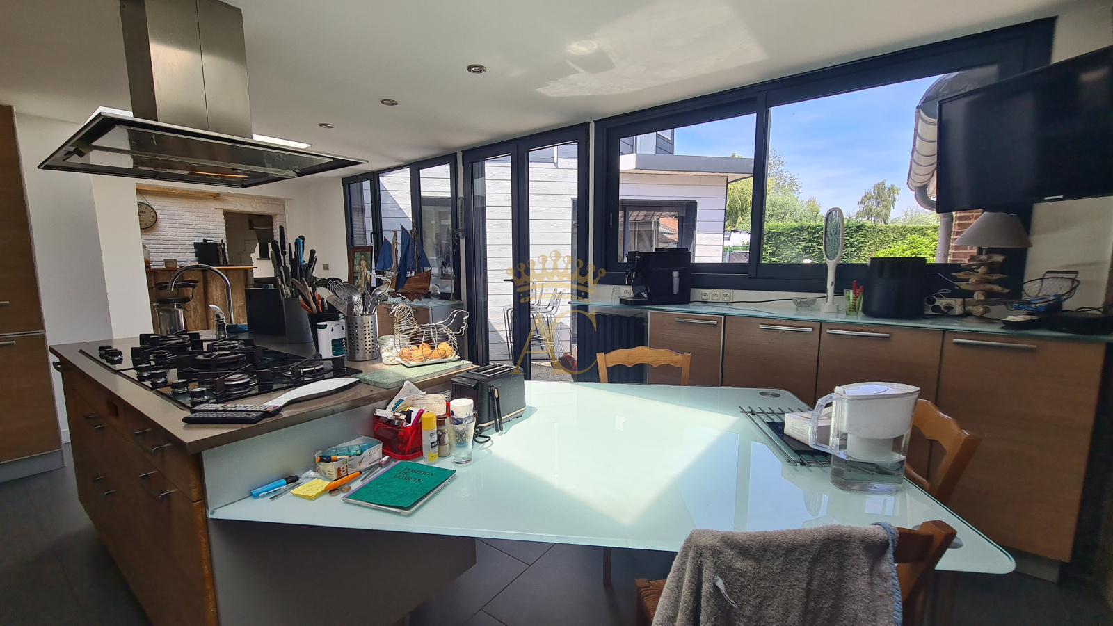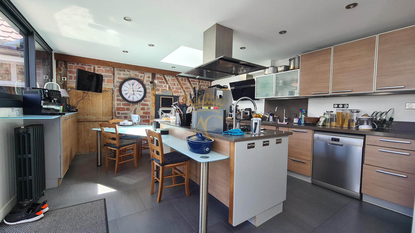 Cuisine Bulthaup avec électroménager Bosch, Whirlpool et Electrolux. Insert bois, parquet en chêne, velux électriques, pompe à chaleur, adoucisseur d'eau, menuiseries alu double vitrage, micro-station.