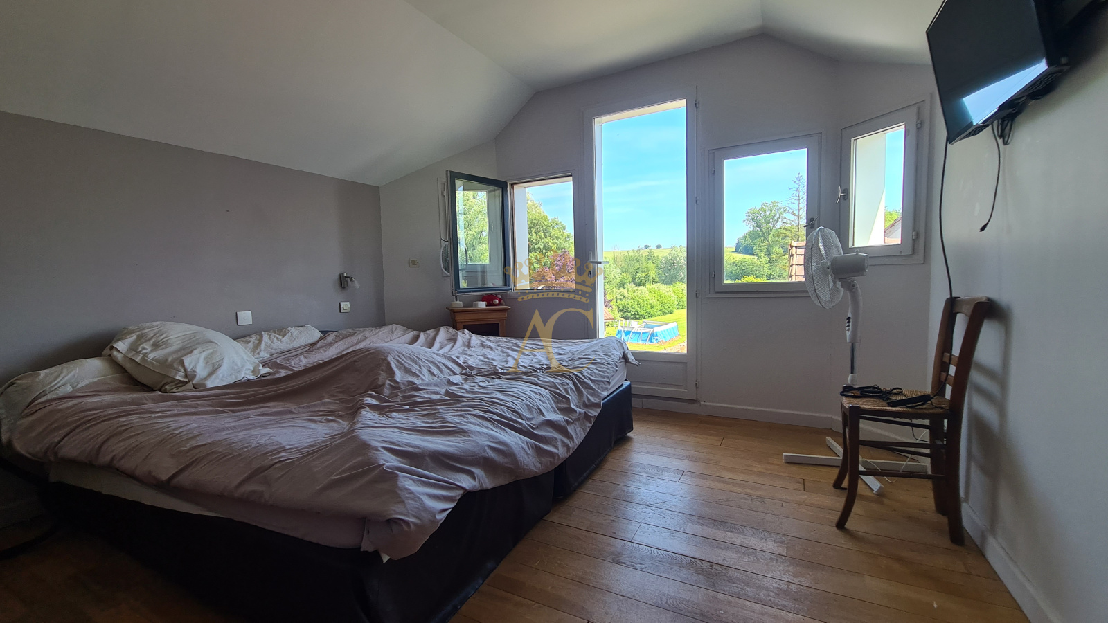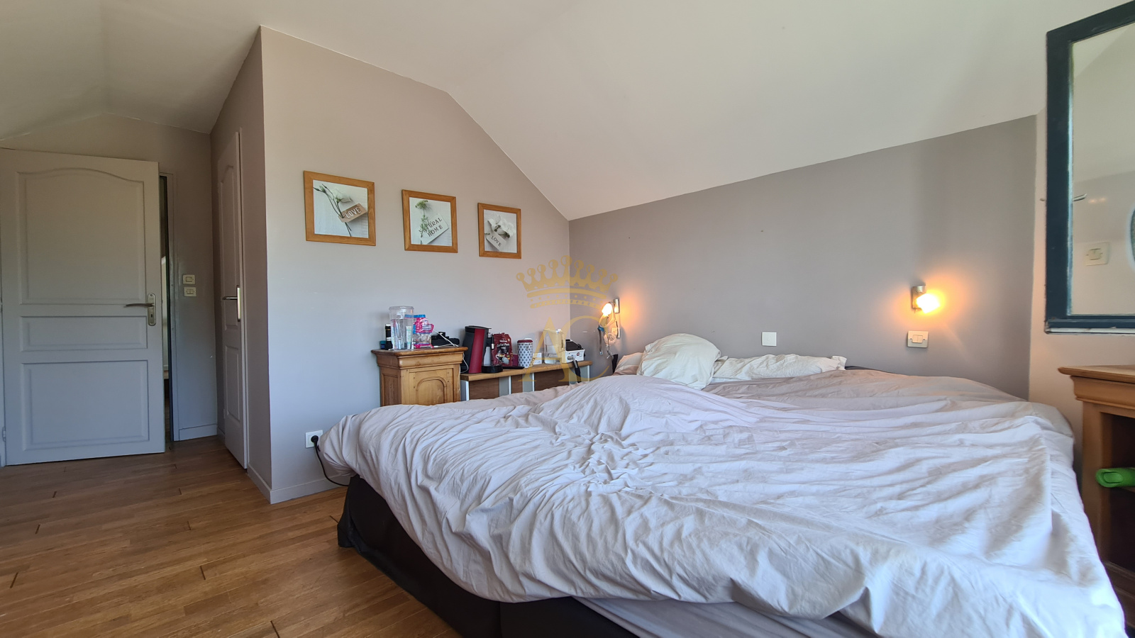 Un palier de 12 m² dessert une chambre avec salle d'eau, une autre avec dressing et accès à un balcon exposé sud-est, ainsi qu'une troisième chambre.